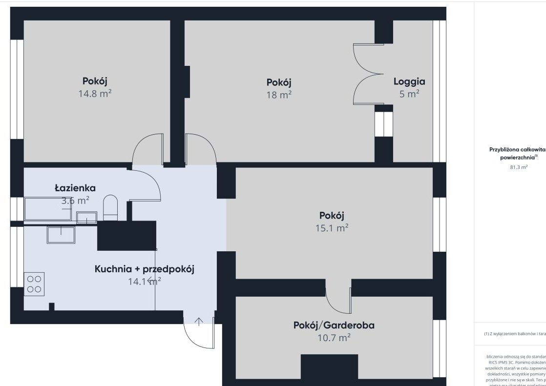Lokal wg KW i aktualnie ma kuchnię i 4 pokoje (jeden pokój jest przechodni a jeden niewielki). Możliwe jest przerobienie kuchni na pokój i urządzenie aneksu kuchennego w salonie.