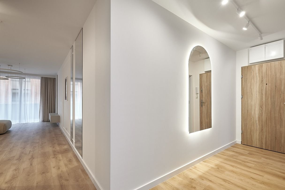 Mieszkanie wykończone jak na zdjęciach, wszystko jest nowe i na gwarancji, kuchnia oraz szafy robione przez stolarza na wymiar, pełny sprzęt AGD w zabudowie kuchennej, do mieszkania należy dokupić podwójne miejsce postojowe w garażu podziemnym .
