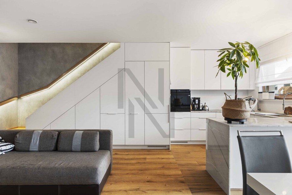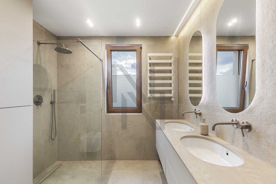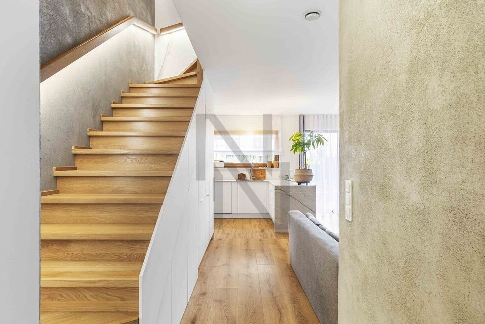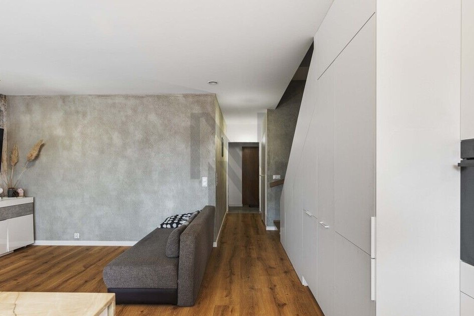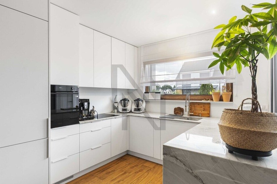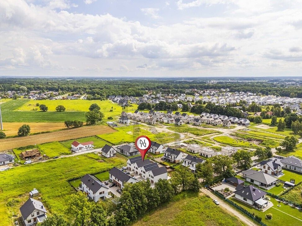 Do wykończenia domu użyto materiałów wysokiej klasy. Na podłogach panele laminowane na podkładzie kwarcowym o najwyższym wskaźniku przepustowości ciepła plus panel quick step Majectic - świetna wydajność przy podłogówkach i najwyższa klasa ścieralności. Ogrzewanie podłogowe w całym domu zasilane przez Pompę ciepła. Zabudowa kuchenna oraz pod schodami robiona na wymiar przez stolarza. W kuchni wysokiej jakości sprzęt AGD. Blaty kamienne z kwarcytu brazylijskiego, zaimpregnowany i zabezpieczony przed zabrudzeniami. Schody dębowe. Wyciągnięte okablowanie na klimatyzacja na parterze i piętrze. Szybkie łącze internetowe 5G rozprowadzone po całym domu.