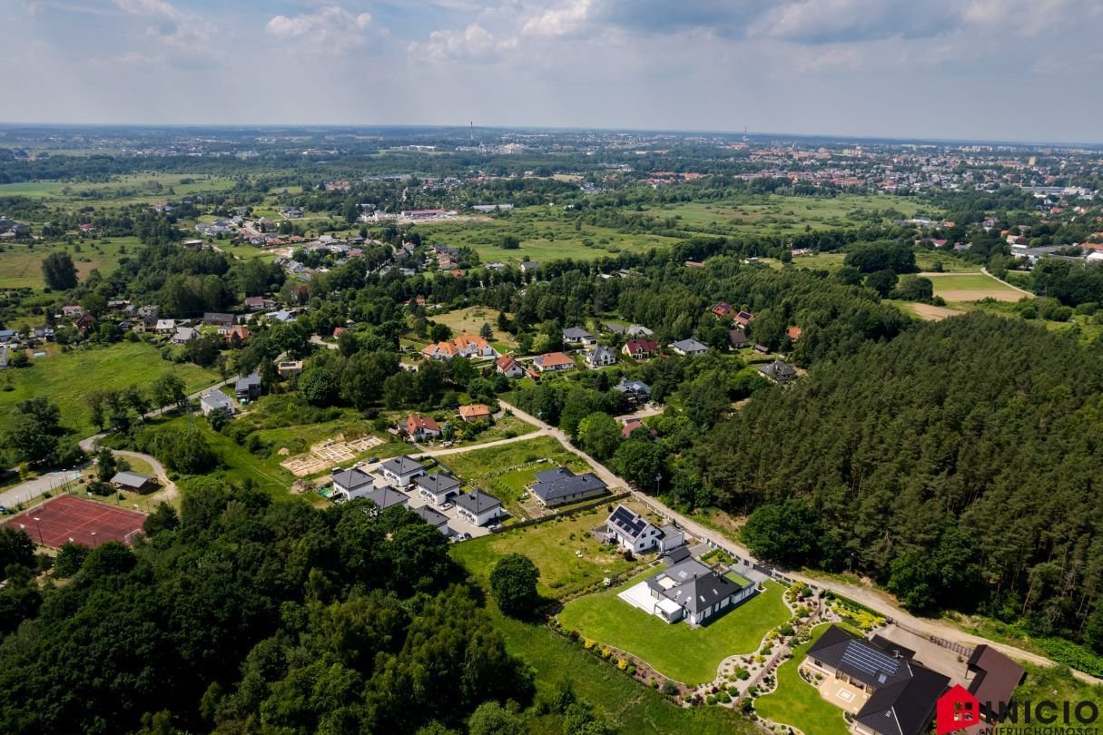 W około zabudowa niska jednorodzinna, niedaleko boisko "Orlik" oraz przystanek autobusu miejskiego.
