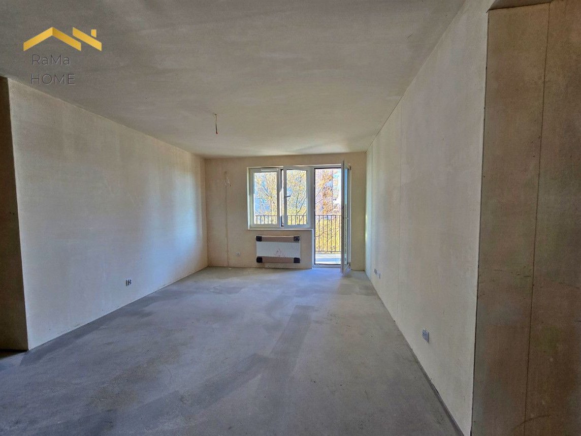 • salon z aneksem kuchennym - jasna przestrzeń z wyjściem na balkon,