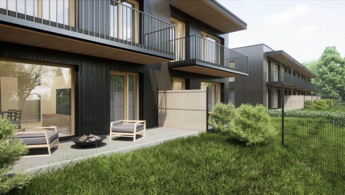 Głównym atutem jest “wieczna elewacja” wykonana z palonego drewna.