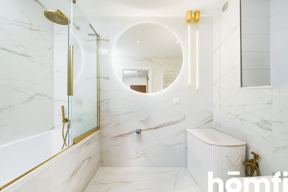 ✔ the bathroom was partially finished (tiles, bathtub, WC, gold fittings, illuminated mirror)