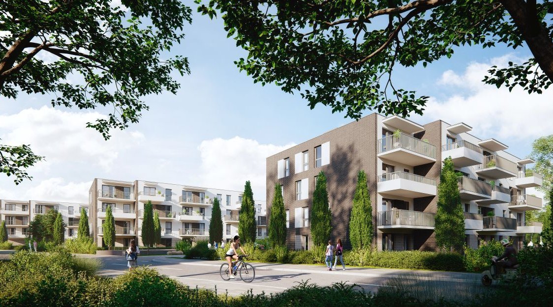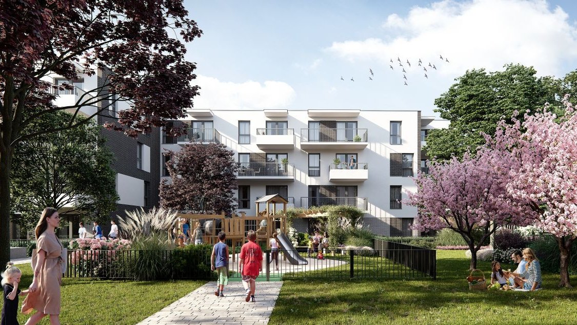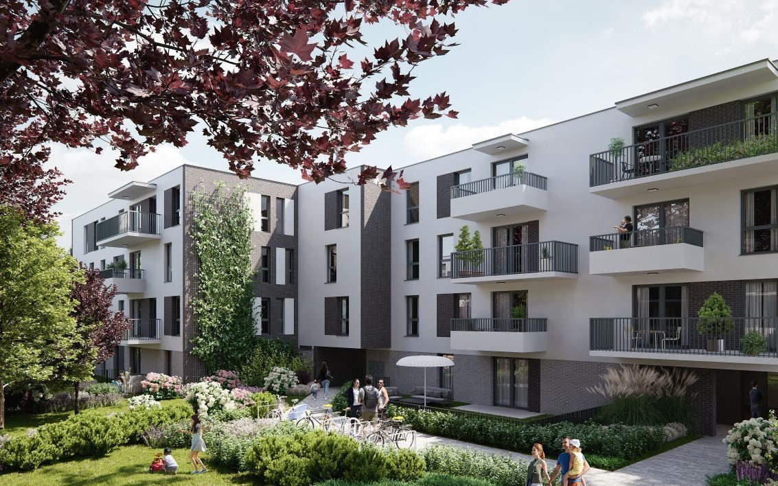 Teren inwestycji będzie wypełniony zielenią – zaplanowano tutaj łąki kwietne, ławki z pergolami i zielone elewacje. Wśród zieleni znajdą się też hamaki, naturalny plac zabaw i ścieżka sensoryczna.