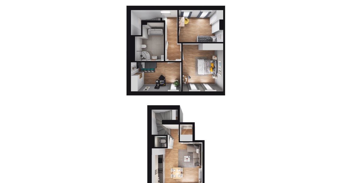 Mieszkania dwupoziomowe 53,20 m² – 71,64 m²