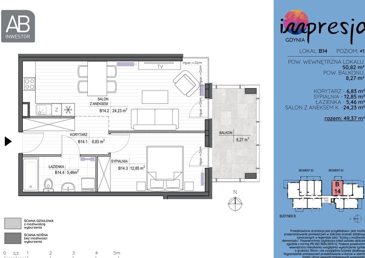 4-pokojowe mieszkanie numer B14 na 1. piętrze w budynku B w Inwestycji Impresja Dewelopera AB Inwestor