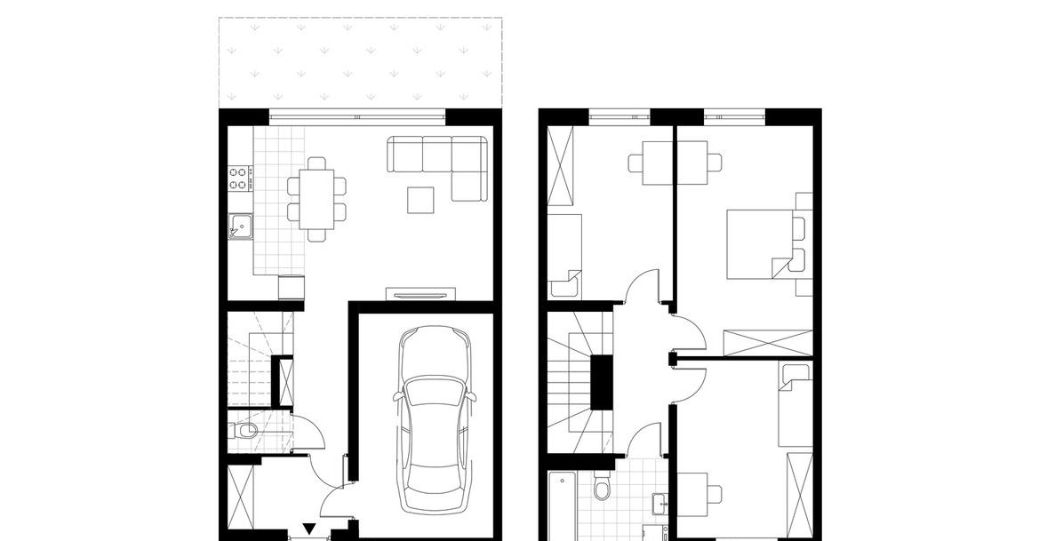 4 pokoje i garaż w obrysie budynku oraz użytkowe poddasze;