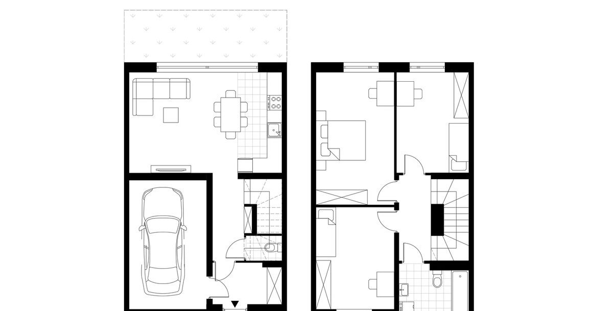 4 pokoje i garaż w obrysie budynku oraz użytkowe poddasze;