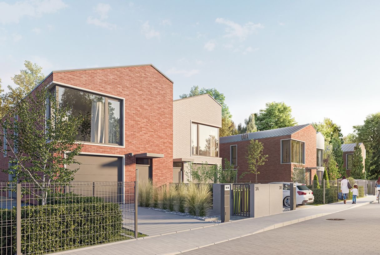 Domy posadowione są na działkach o powierzchni ok. 500 m2.