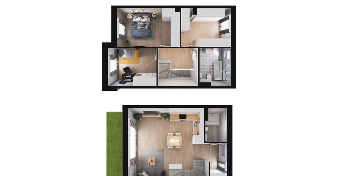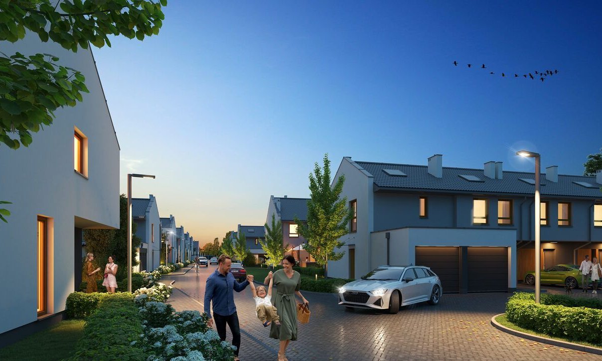 W ofercie znajdziesz domy bliźniacze w układach 3- i 4-pokojowych o powierzchniach od 64 do 82 m². Każdy z nich posiada dwupoziomowy układ – na parterze znajduje się strefa dzienna z wyjściem do ogrodu, a na piętrze prywatna część wypoczynkowa. Dzięki temu Twój dom stanie się miejscem, w którym będziesz chciał odpoczywać i spędzać czas z bliskimi. Dodatkowo, każdy dom posiada prywatny ogród o powierzchni od 22 do 127 m² oraz garaż lub miejsce postojowe.