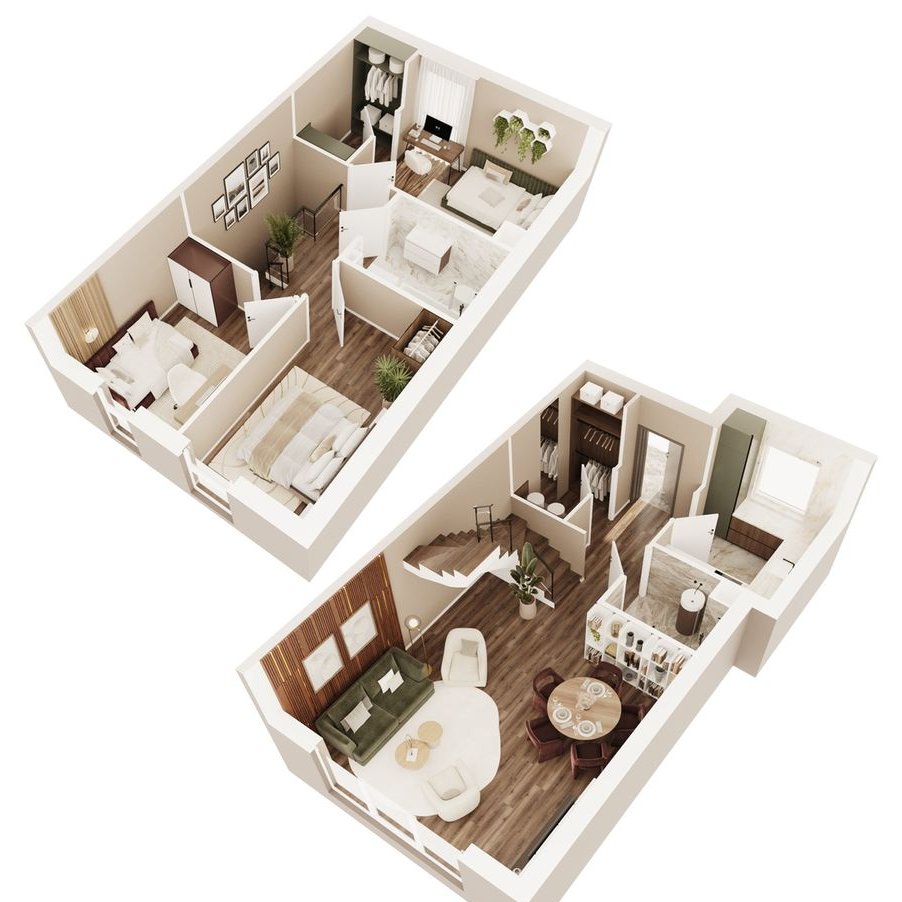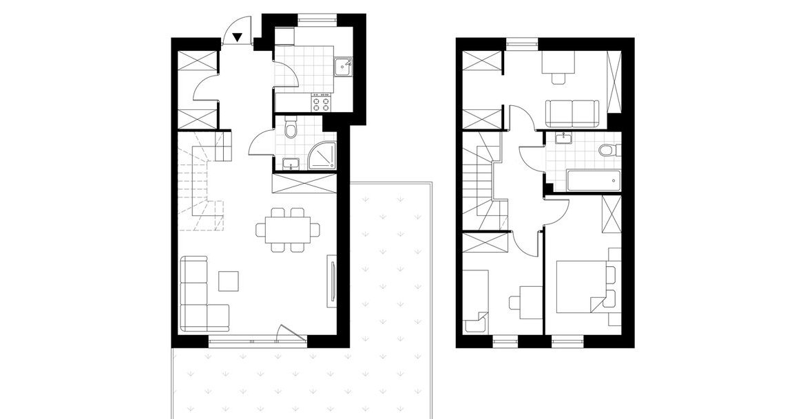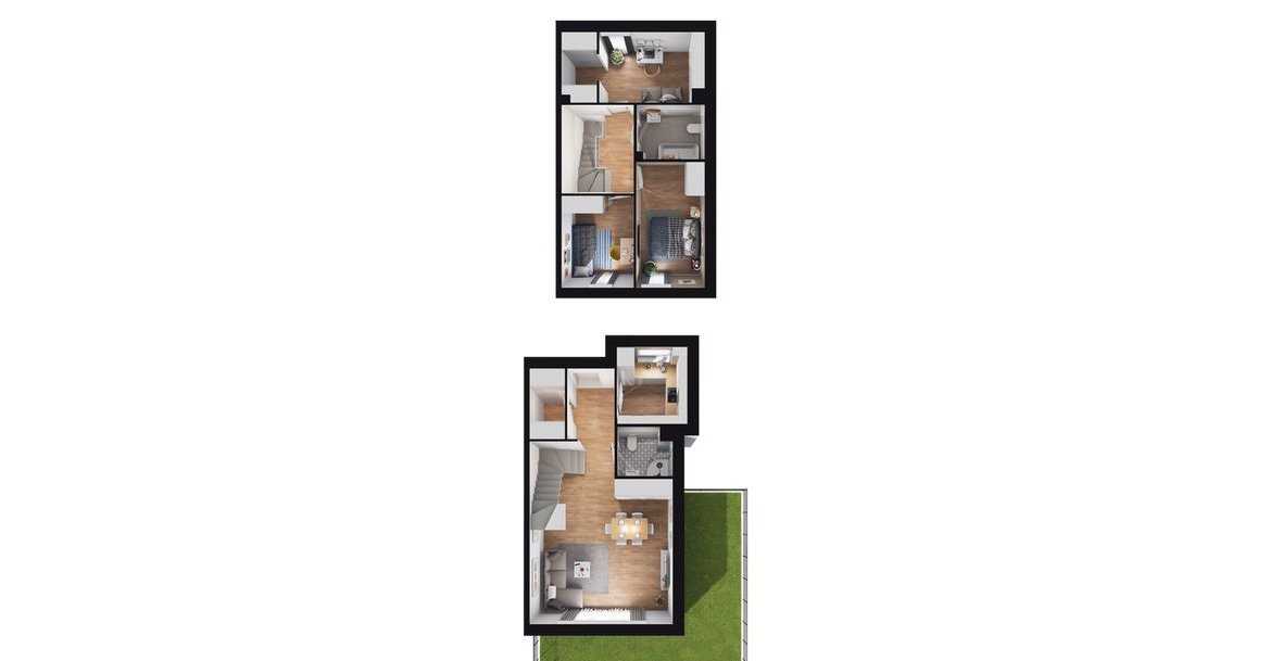 Do każdego lokalu przynależą dwa miejsca postojowe – na zewnątrz lub w garażu. Układy mieszkań dopasowaliśmy do potrzeb rodziny – osobna jasna kuchnia, przestronny salon i 3 pokoje na piętrze. Wszystko przemyślane tak, aby codzienność była wygodna, a przestrzeń sprzyjała zarówno wspólnym chwilom, jak i indywidualnemu odpoczynkowi.