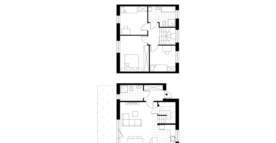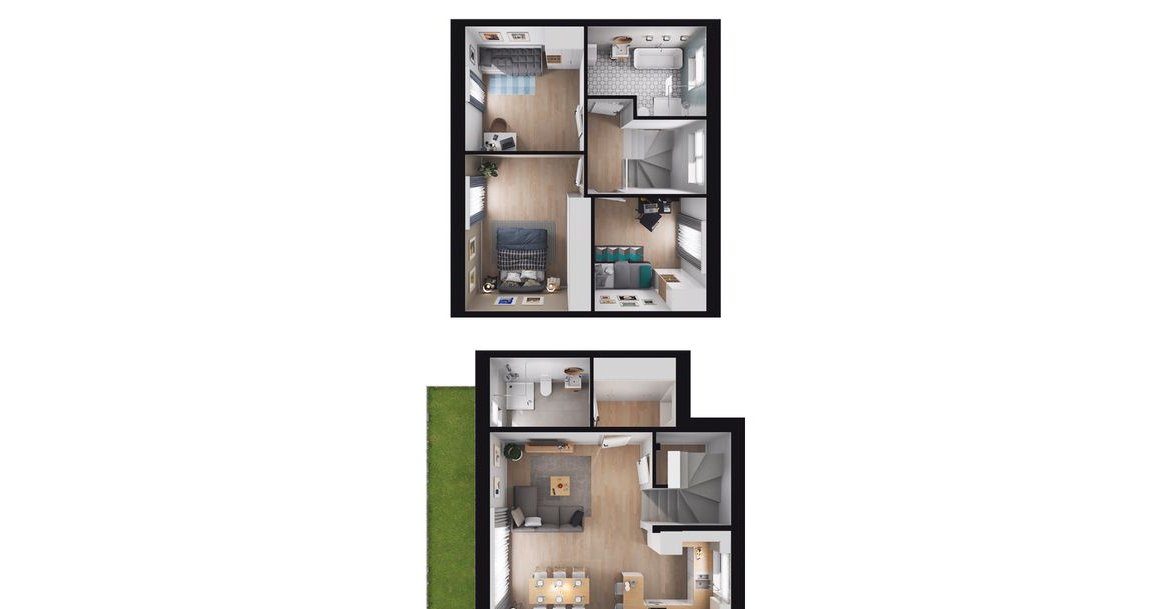Domy docelowo zostaną wykończone w standardzie deweloperskim, z możliwością zmiany układu pomieszczeń na piętrze – bez dopłaty.