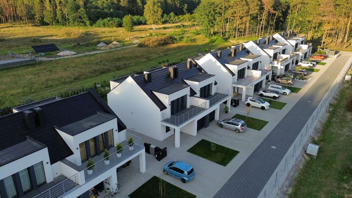 Dwukondygnacyjne lokale o powierzchni użytkowej 94 m2 każdy, zostały usytuowane na działkach o wielości od 172 do 308 metrów kwadratowych. Na parterze mieści się przestronny salon z kuchnią, przedpokój, łazienka oraz pomieszczenie gospodarcze. Piętro obejmuje trzy sypialnie i wygodną łazienkę. Atutem budynku jest możliwość adaptacji poddasza, co pozwoli właścicielom uzyskać 26 m2 dodatkowej powierzchni dla własnych potrzeb. Do każdej nieruchomości przynależą dwa miejsca postojowe usytuowane bezpośrednio przed wejściem do domu z opcją postawienia wiaty. Dodatkowym kosztem pozostaje udział w drodze wewnętrznej .