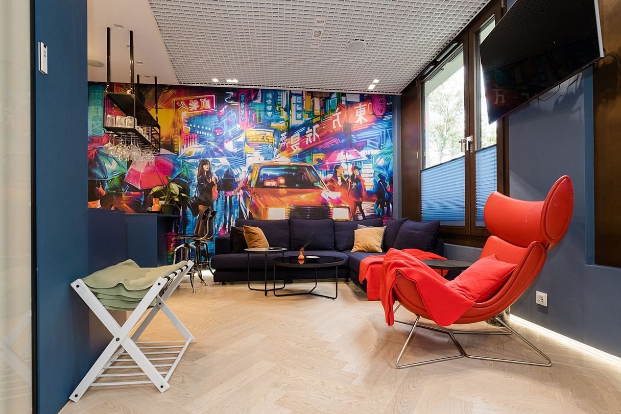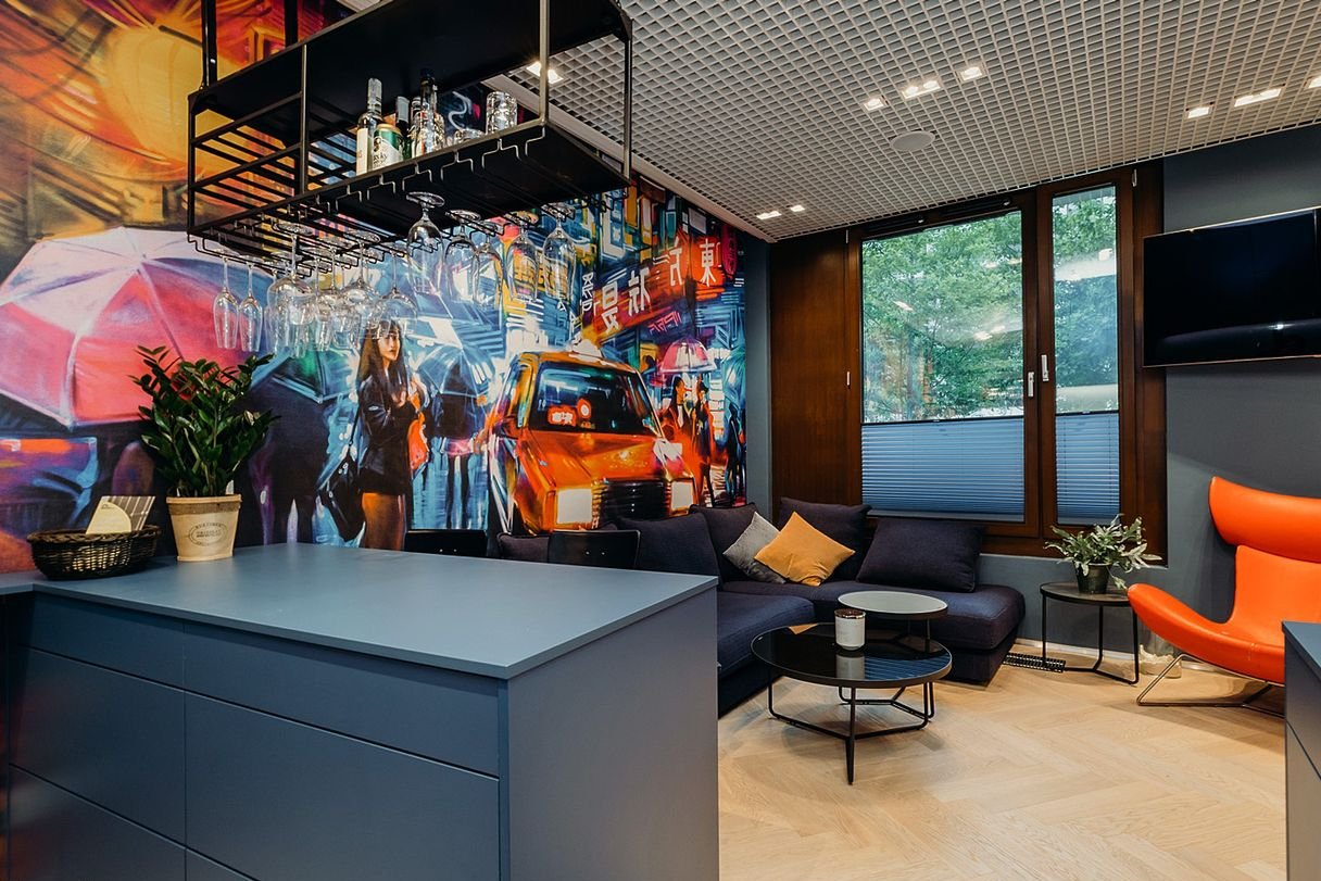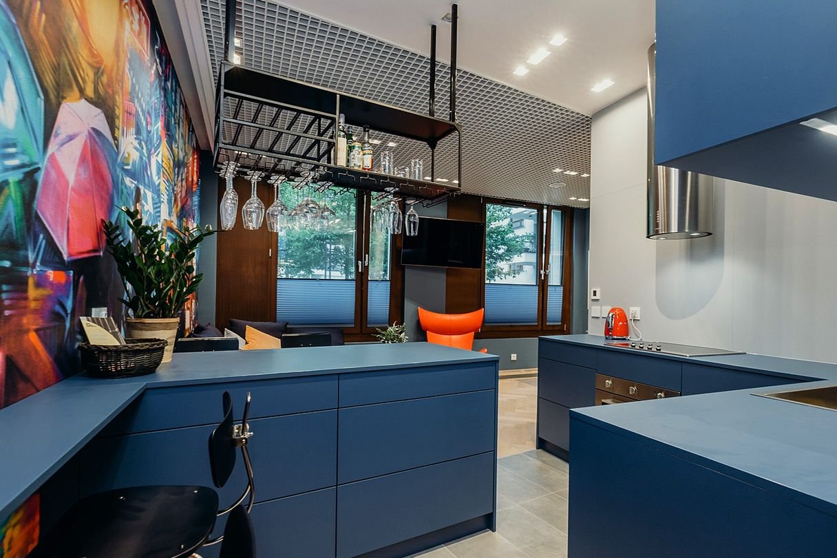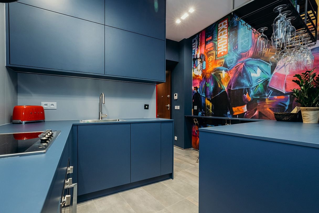 Autorski projekt Quba Design NYC, mural Dana Kitchnera, sprzęt SMEG, meble BoConcept – design, który się wyróżnia i sprzedaje.