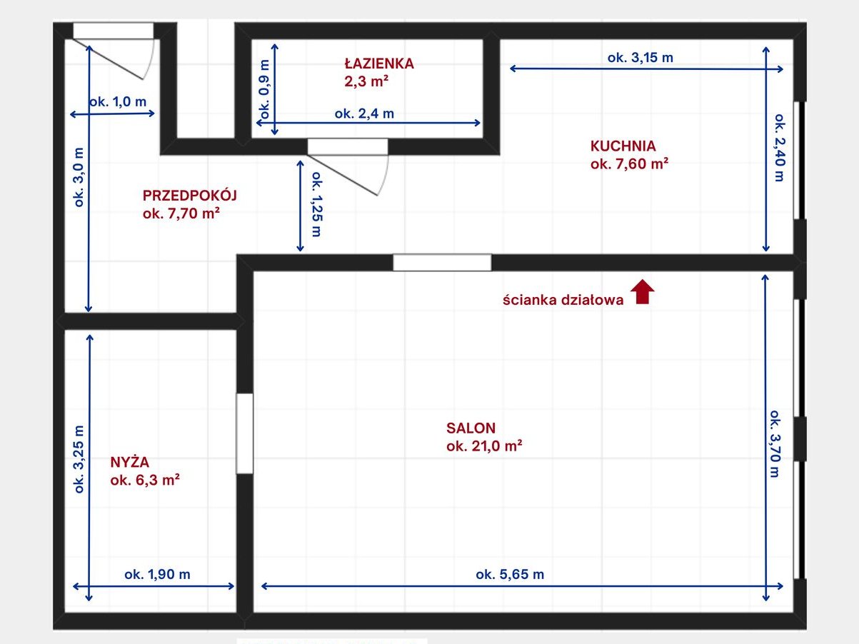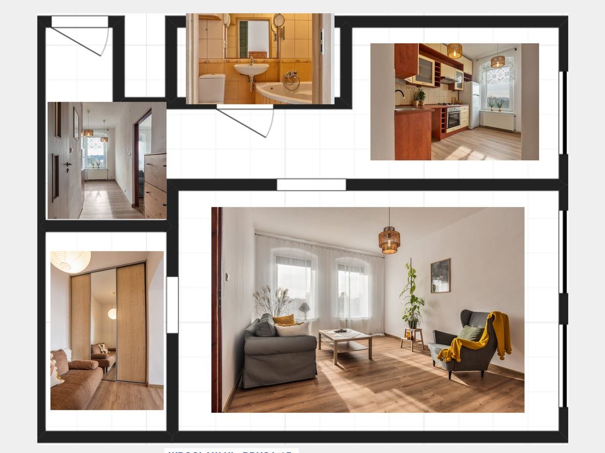 Rzut mieszkania wraz z dokładniejszymi wymiarami na jednym ze zdjęć.