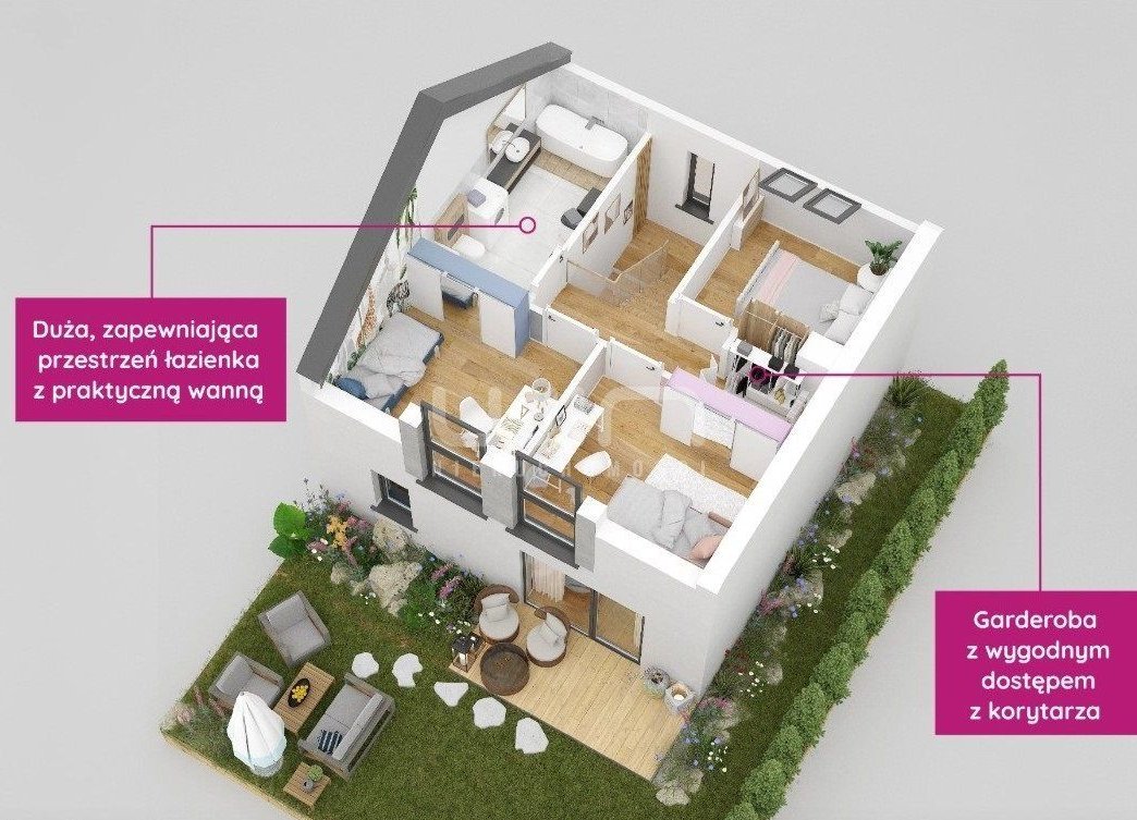 Piętro: 3 sypialnie (w tym jedna z garderobą) duuuża łazienka, wyjście na strych