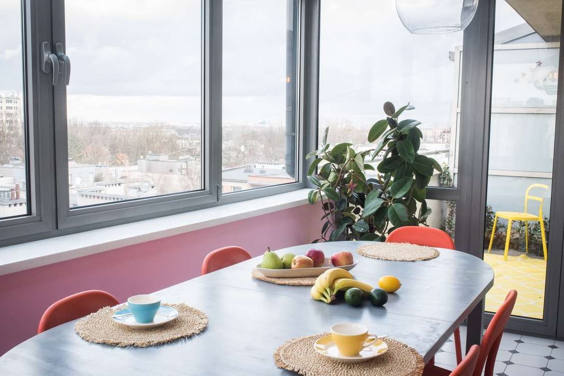 jadalni/ogrodu zimowego 12,3 m² (z dodatkowym ogrzewaniem podłogowym) z wyjściem na taras (8,25 m²) i balkon (6,0 m²)