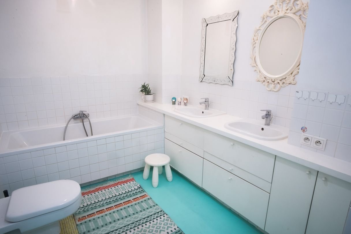 łazienki 8,14 m² z wanną, oddzielnym prysznicem, dwiema umywalkami