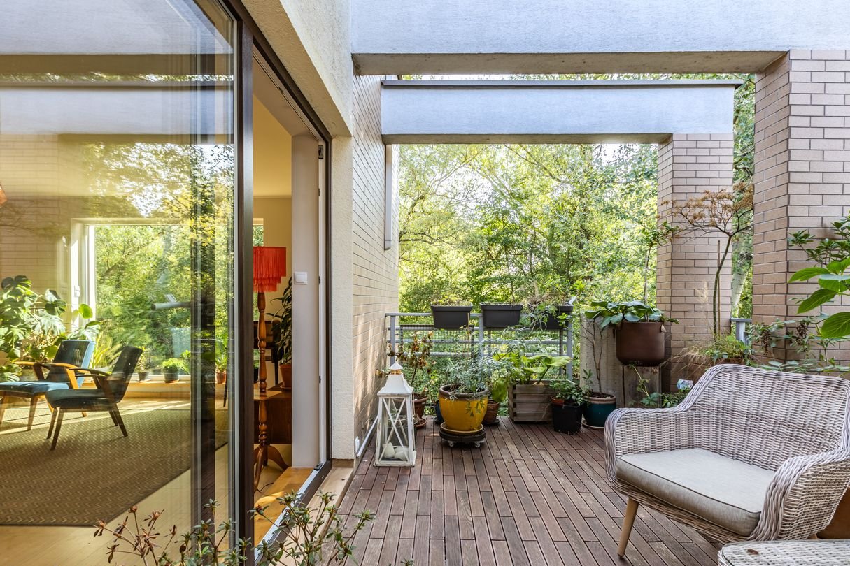 Duże, panoramiczne okna zapewniają wspaniały widok na otaczającą zieleń, w tym starodrzewie oraz staw. Wyjątkowa lokalizacja na terenie osiedla zapewnia dużą prywatność. Duży taras otoczony jest ze wszystkich stron drzewami, a szum topoli towarzyszy posiłkom na świeżym powietrzu.