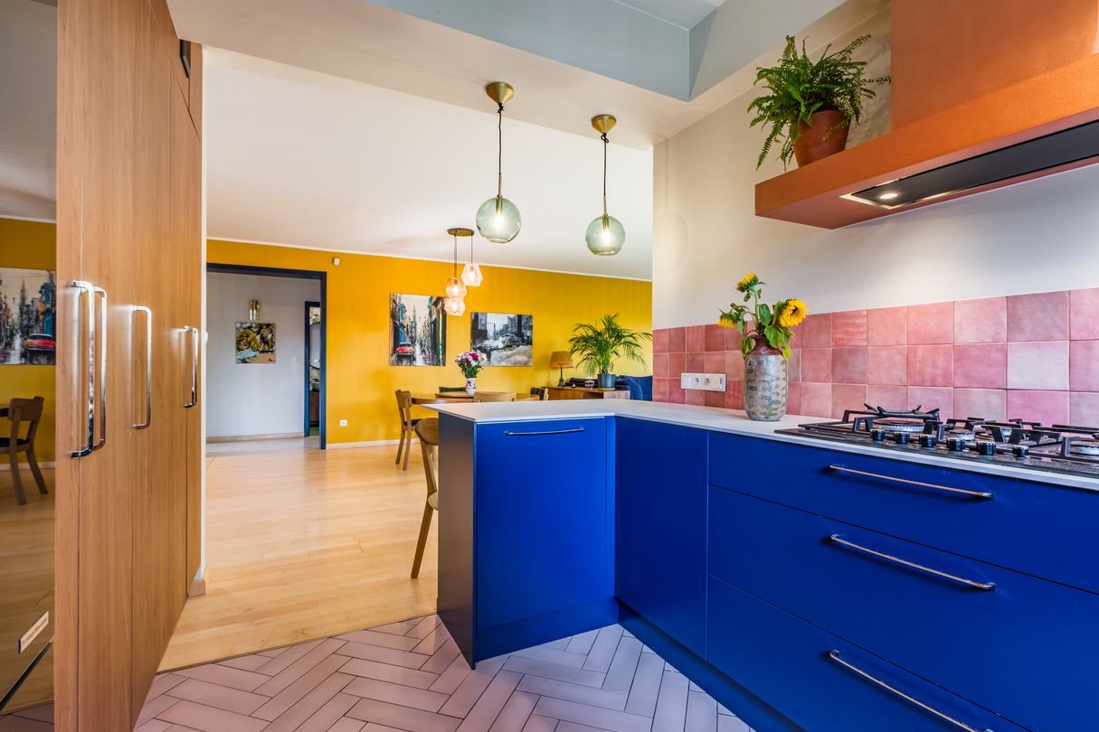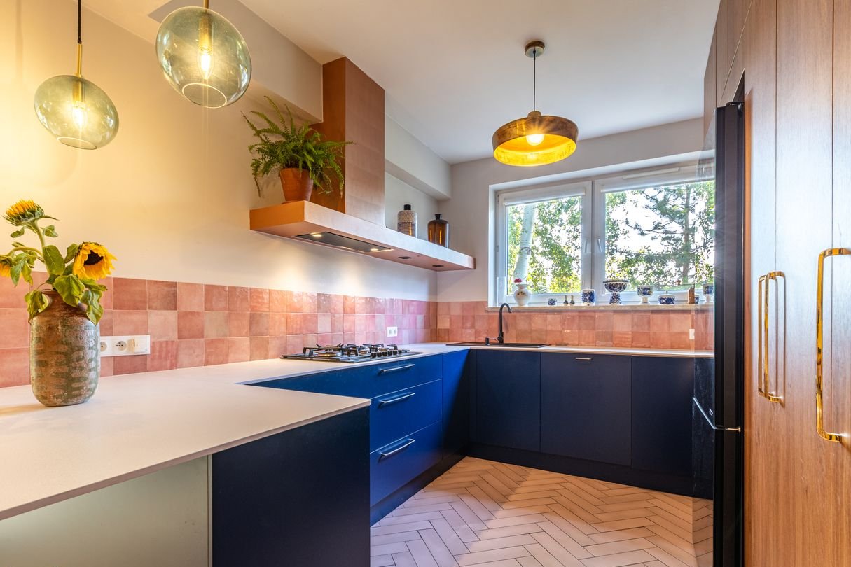 Kuchnia: Nowoczesna, w pełni wyposażona i bardzo ergonomiczna. Wysokiej klasy sprzęt AGD, w tym zmywarka, piekarnik, pięciopunktowa płyta gazowa, lodówka oraz bardzo wydajny okap, dzięki czemu zapachy kuchenne nie przechodzą do salonu. Kuchnia została zaprojektowana w sposób funkcjonalny, z dużą ilością miejsca do przechowywania.