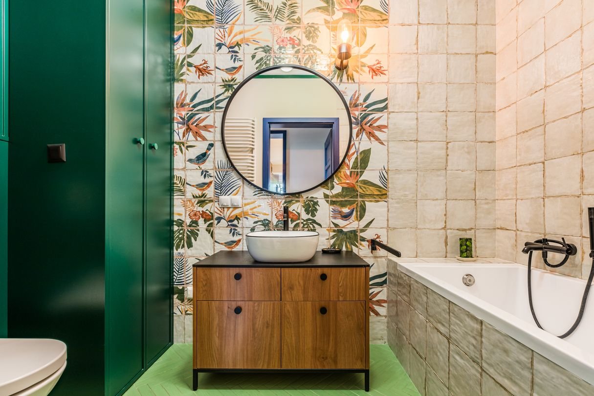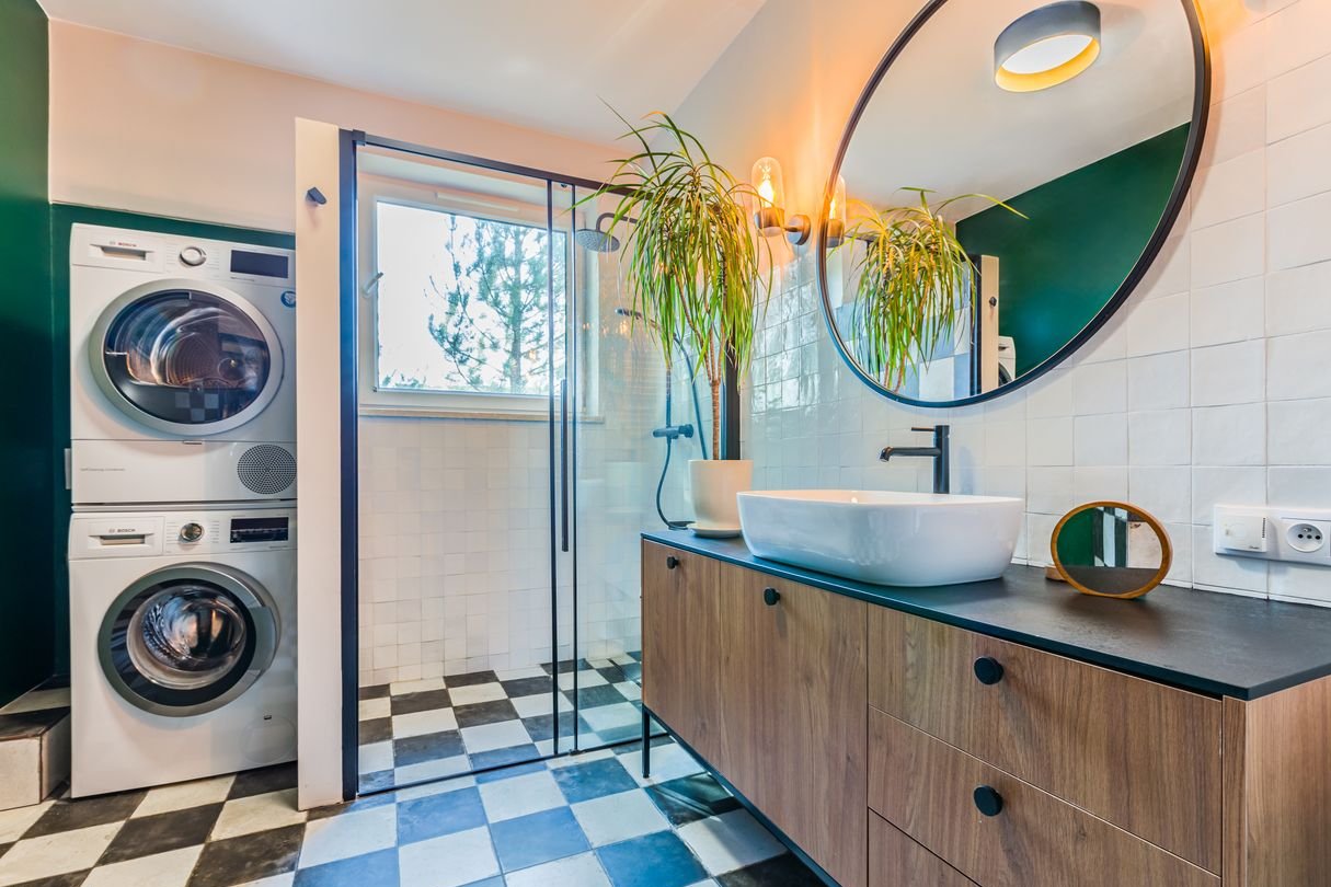 Łazienki: Dwie łazienki, w tym duża łazienka z przestronną kabiną prysznicową, a druga z wanną. Duża łazienka ma okno, z którego jest widok na drzewa, ptaki i wiewiórki. W obu zapewnione jest ogrzewanie podłogowe.