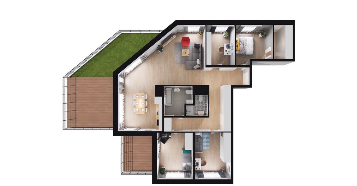 5-pokojowe mieszkanie numer 1BB0801 na 8. piętrze w Inwestycji Awangarda Mogilska Dewelopera Skanska