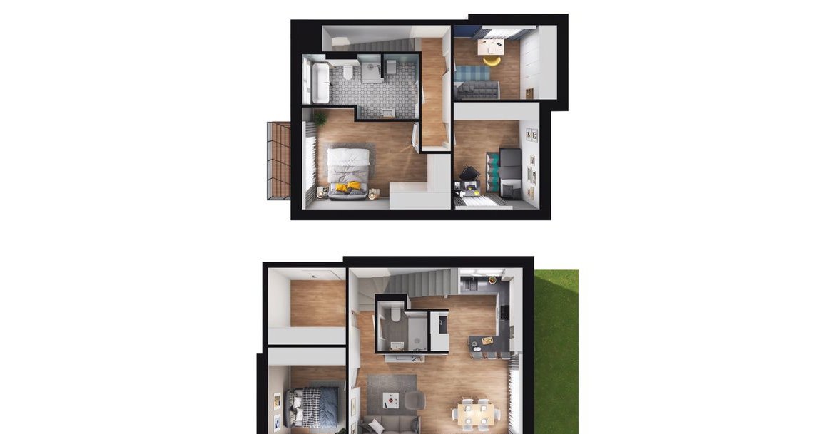 Ogródek dla każdego lokalu oraz dodatkowy taras na pierwszym piętrze do wybranych mieszkań
