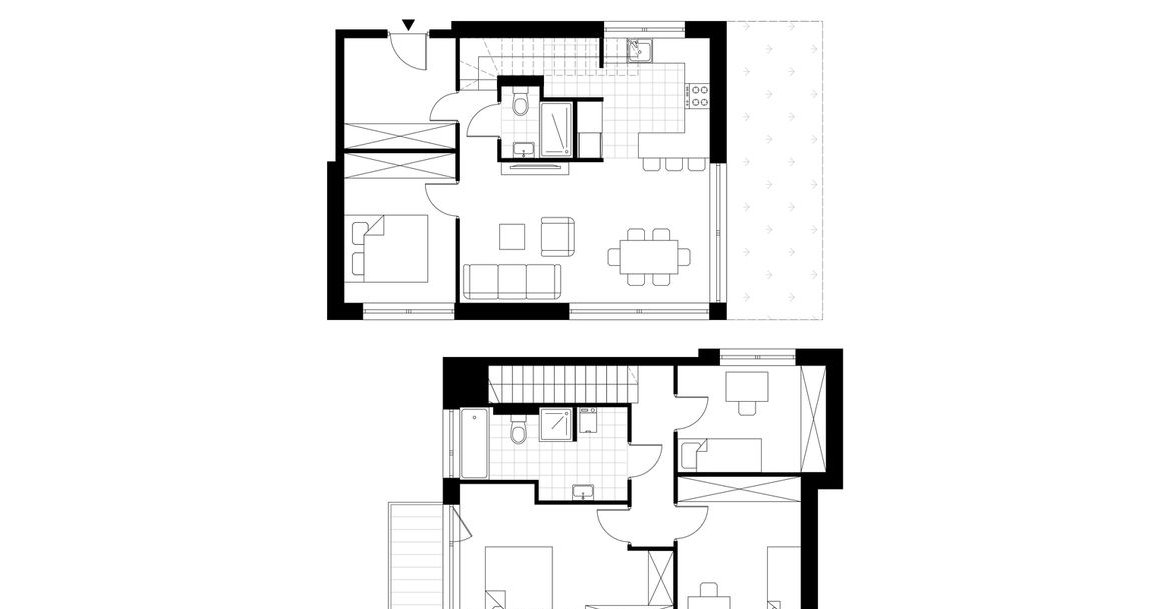 Nasza oferta obejmuje 48 dwupoziomowych apartamentów – każdy z nich jest 5 – pokojowym mieszkaniem z dwoma łazienkami, ogrodem i dodatkowym garażem. Wybrane apartamenty posiadają dostęp do tarasu na pierwszym piętrze.