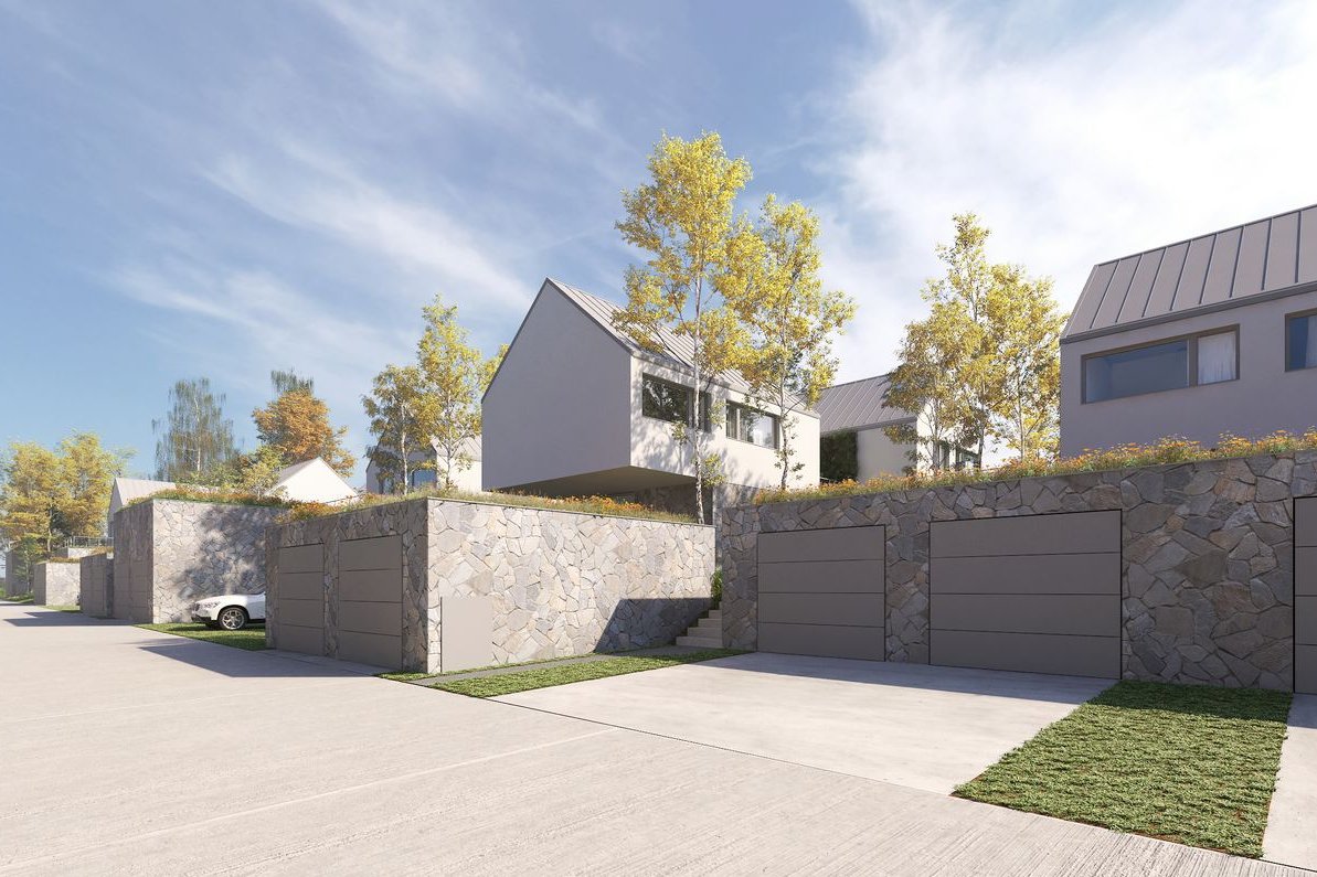 Miejsca postojowe: Wszystkie lokale mieszkalne będą posiadać miejsca postojowe w garażach (samodzielnych lub wbudowanych w bryłę budynku). Dodatkowo przewidziano możliwość parkowania na podjazdach oraz w innych wyznaczonych miejscach.