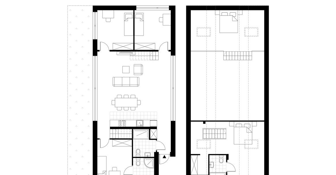 Parter: Otwarta przestrzeń dzienna, beton architektoniczny na podłodze.