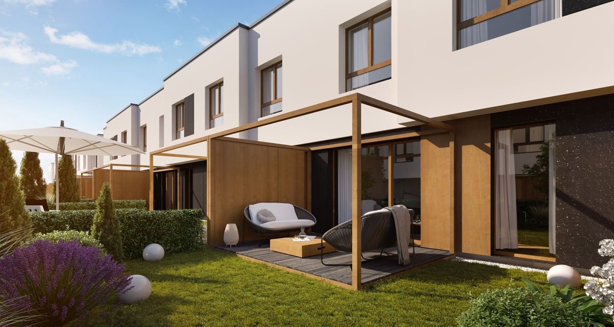 Osiedle Contigo obejmuje także 46 lokali mieszkalnych w zabudowie szeregowej, dwulokalowej o powierzchniach od 72 do 89 mkw. oraz układach 4-pokojowych. Każde mieszkanie dysponuje indywidualnym garażem, miejscem postojowym naziemnym, komórką lokatorską oraz dużym tarasem.