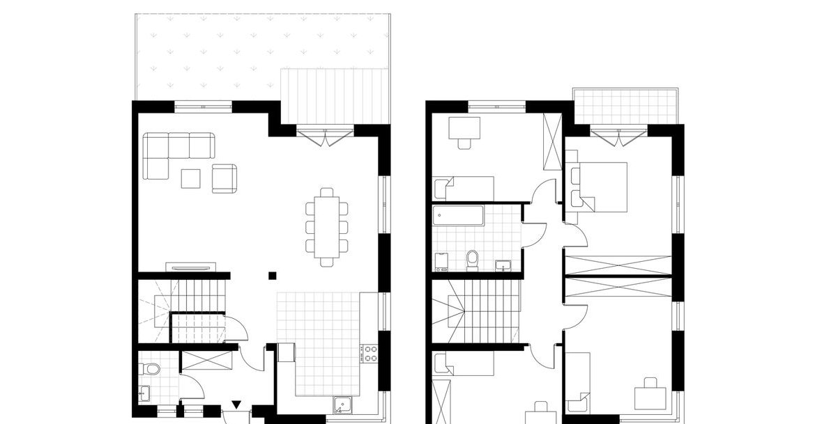 segment skrajny o metrażu 123,02 mkw. (salon, 4 sypialnie, poddasze 53,5 mkw. po podłodze) + ogród 126-169 mkw.