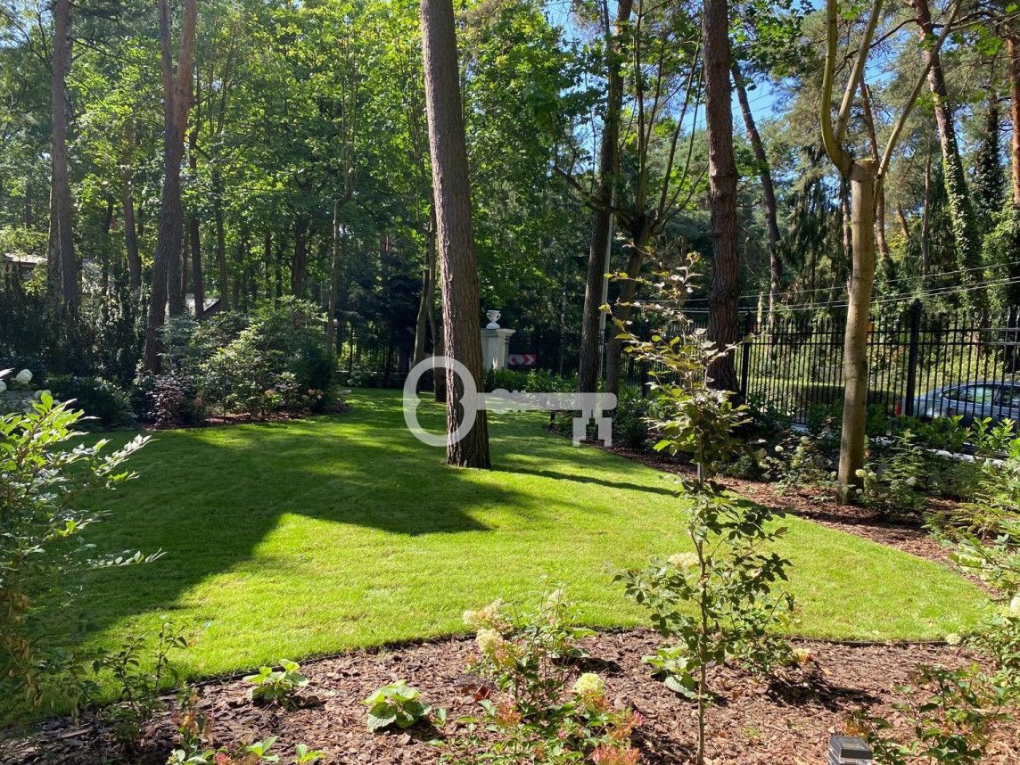 The plot has an area of 1989 m², is rectangular in shape (approx. 54 m × 41 m), and boasts beautiful plantings and mature trees. The garden is equipped with an automatic watering system. Thanks to the partial deforestation of the plot, more light reaches the interior, which enhances the feeling of space.