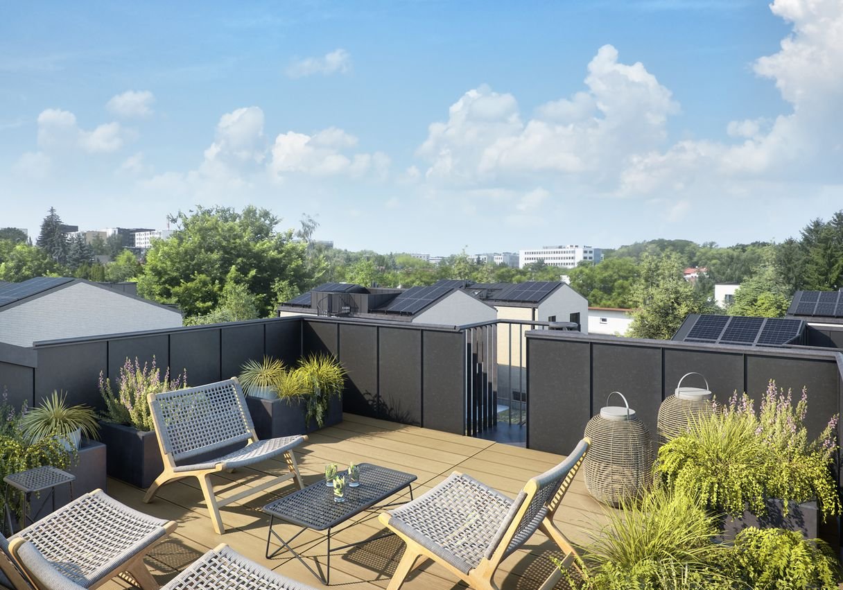 przestronne tarasy na garażach (dla wybranych apartamentów).