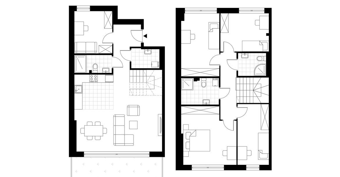 Projekt Oaza Kosmatki obejmuje 36 wyjątkowych segmentów o powierzchni od 121 do 132 m², które zaprojektowano z myślą o wygodzie i dobrostanie mieszkańców. Przestronne wnętrza z nowoczesnym aneksem kuchennym, czterema sypialniami oraz dodatkowymi pomieszczeniami, takimi jak pralnia czy gabinet, zapewniają komfort i przestronność. Duże przeszklenia wpuszczają naturalne światło, podkreślając nowoczesny design mieszkań.