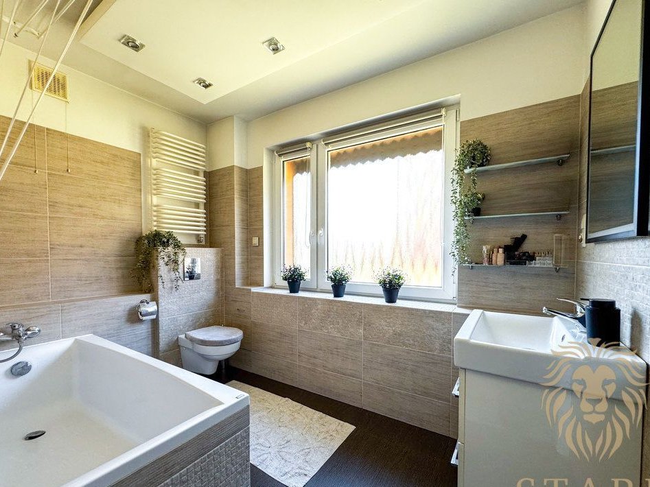 Funkcjonalny układ: Przemyślana przestrzeń z osobnym schowkiem gospodarczym, co ułatwia utrzymanie porządku.