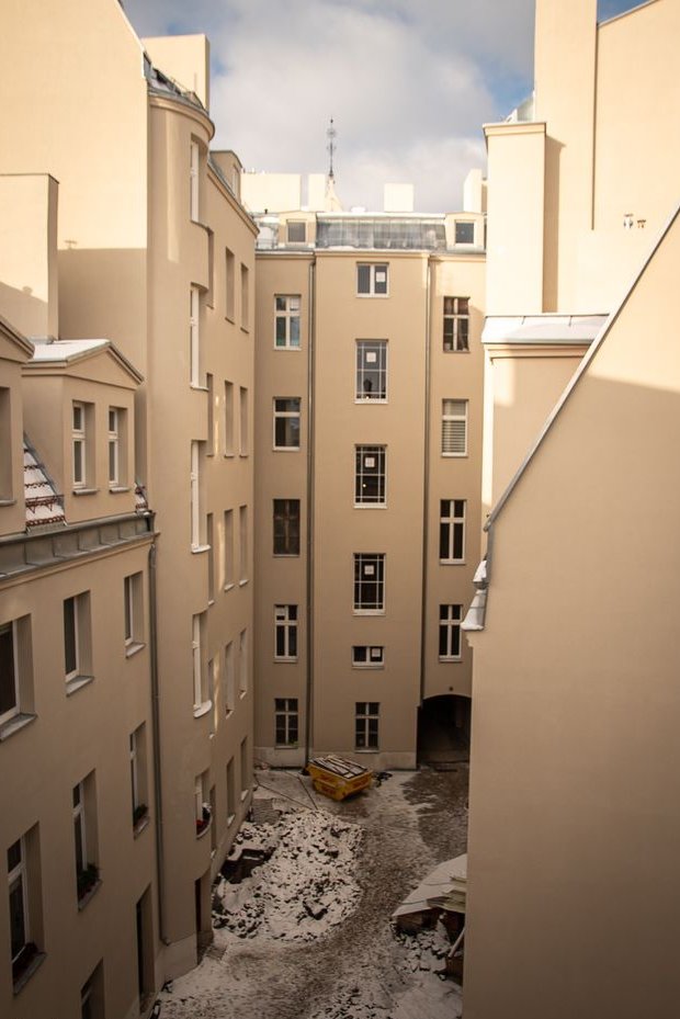 Lokalizacja zapewnia pełen dostęp do infrastruktury Centrum, a jednocześnie spokój dzięki położeniu w oficynie.