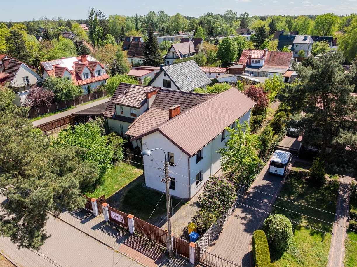 Na działce o powierzchni ok. 832 m² stoi dom o powierzchni ok. 200 m², z dwoma niezależnymi wejściami.