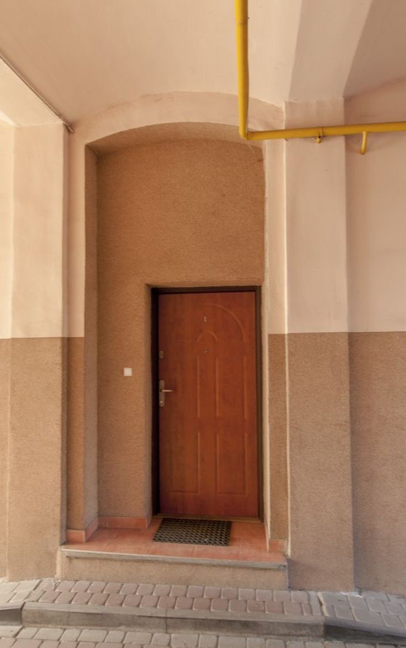Lokal posiada dwa niezależne wejścia – z klatki schodowej oraz bezpośrednio z prześwitu bramowego. Dzięki temu nieruchomość może być wykorzystana zarówno jako mieszkanie, jak i lokal na kancelarię, biuro lub pracownię.