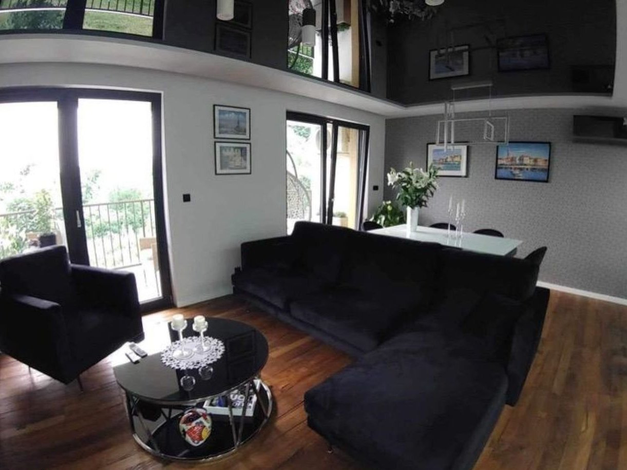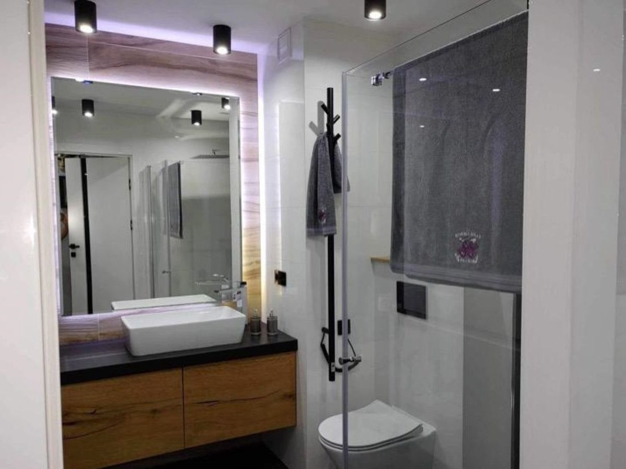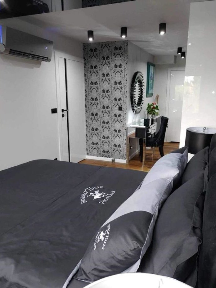 Wewnątrz znajdziesz pełne wyposażenie, m.in. lodówkę, piekarnik parowy, piekarnik combo, ekspres do kawy w zabudowie oraz winiarkę. Większa łazienka wyposażona w pralko-suszarkę (Cały sprzęt AGD firmy BOSCH).