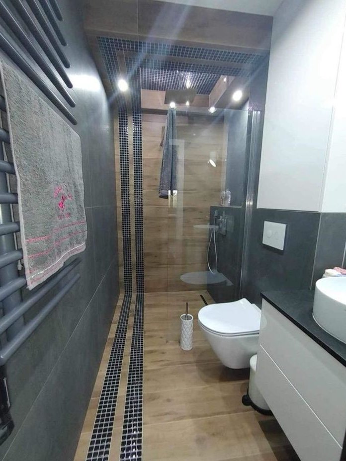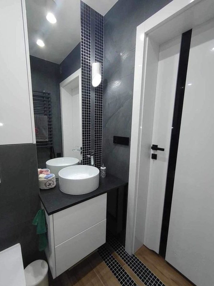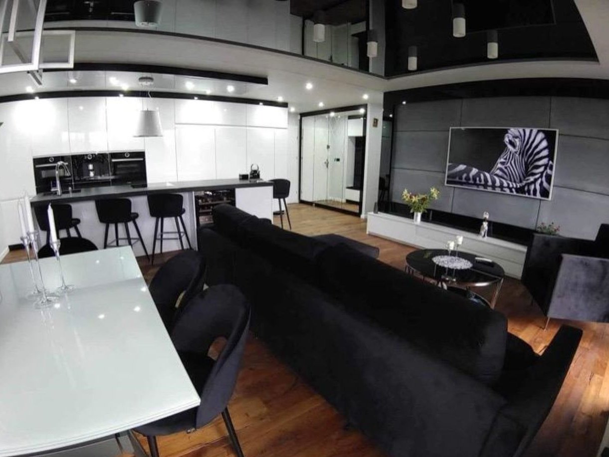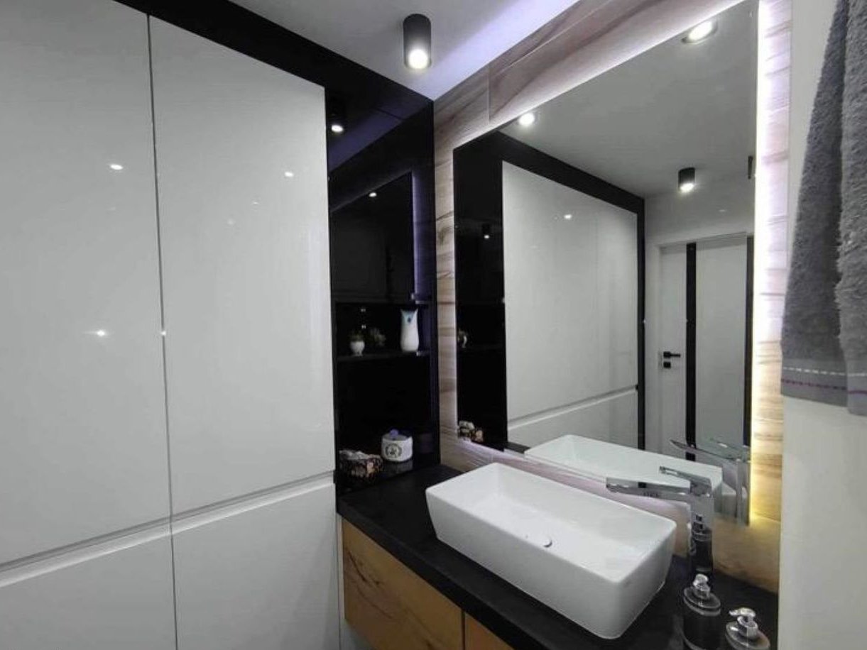 Wewnątrz znajdziesz pełne wyposażenie, m.in. lodówkę, piekarnik parowy, piekarnik combo, ekspres do kawy w zabudowie oraz winiarkę. Większa łazienka wyposażona w pralko-suszarkę (Cały sprzęt AGD firmy BOSCH).
