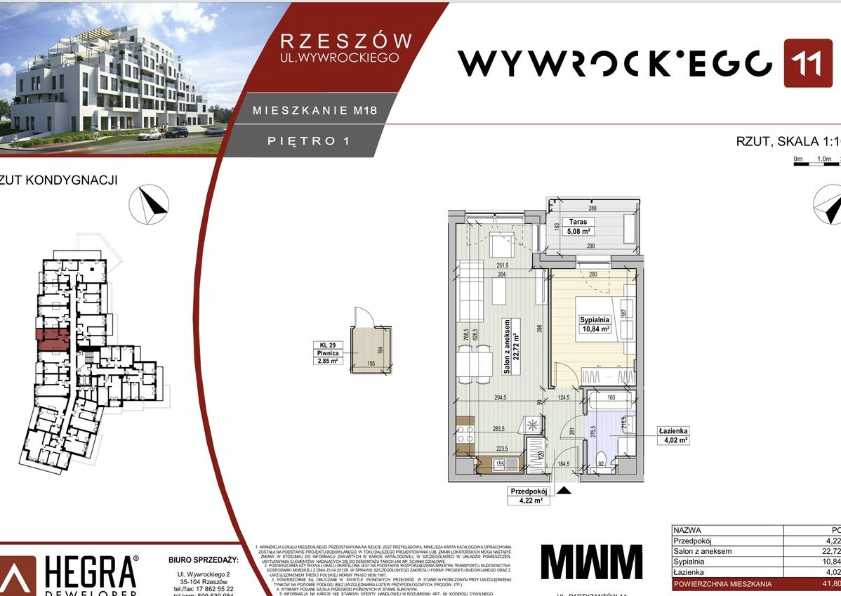 Na sprzedaż nowoczesny apartament o powierzchni 41,8 m², zlokalizowany na 1. piętrze nowej inwestycji w Rzeszowie - Wywrockiego 11 - apartamenty klasy PREMIUM.