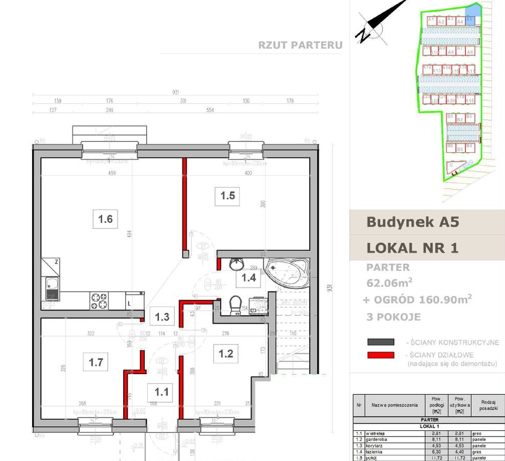Wyjątkowa Okazja Apartament narożny z Ogrodem 161mkw (lok57) posiada 4 pokoje, powierzchnia 62.06mkw. Apartament położony jest na parterze.
