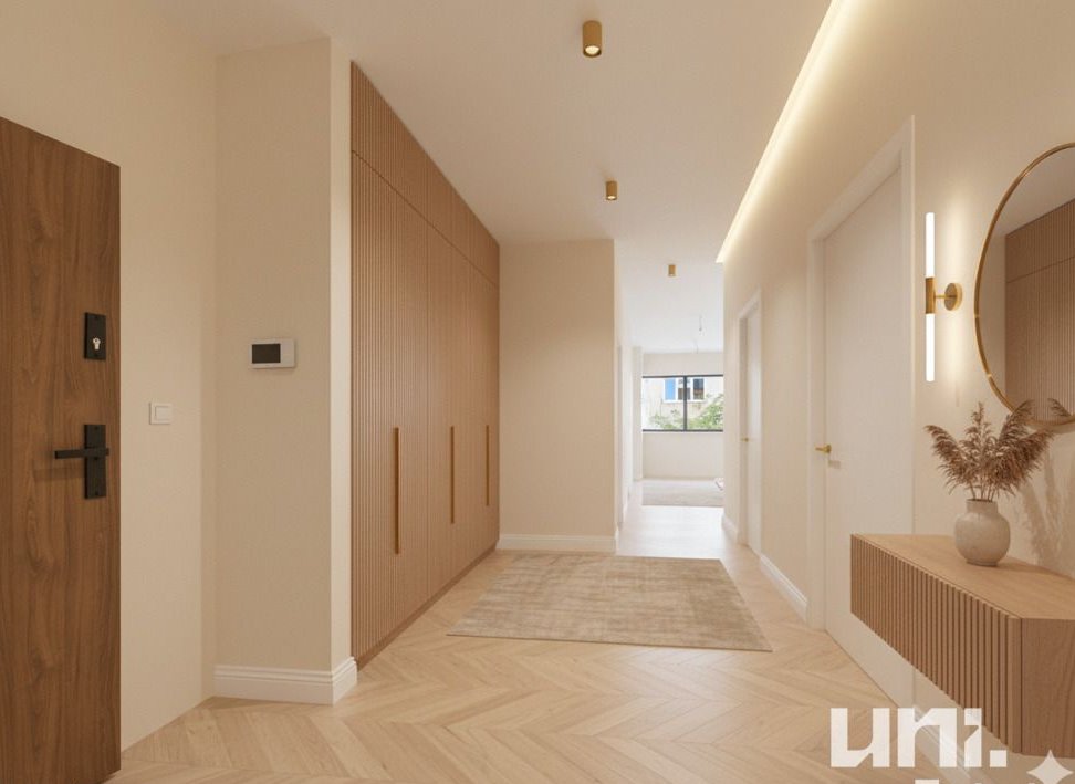 przestronny korytarz z miejscem na szafę w zabudowie,