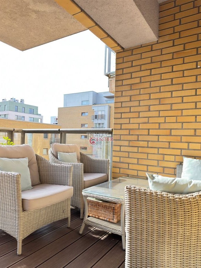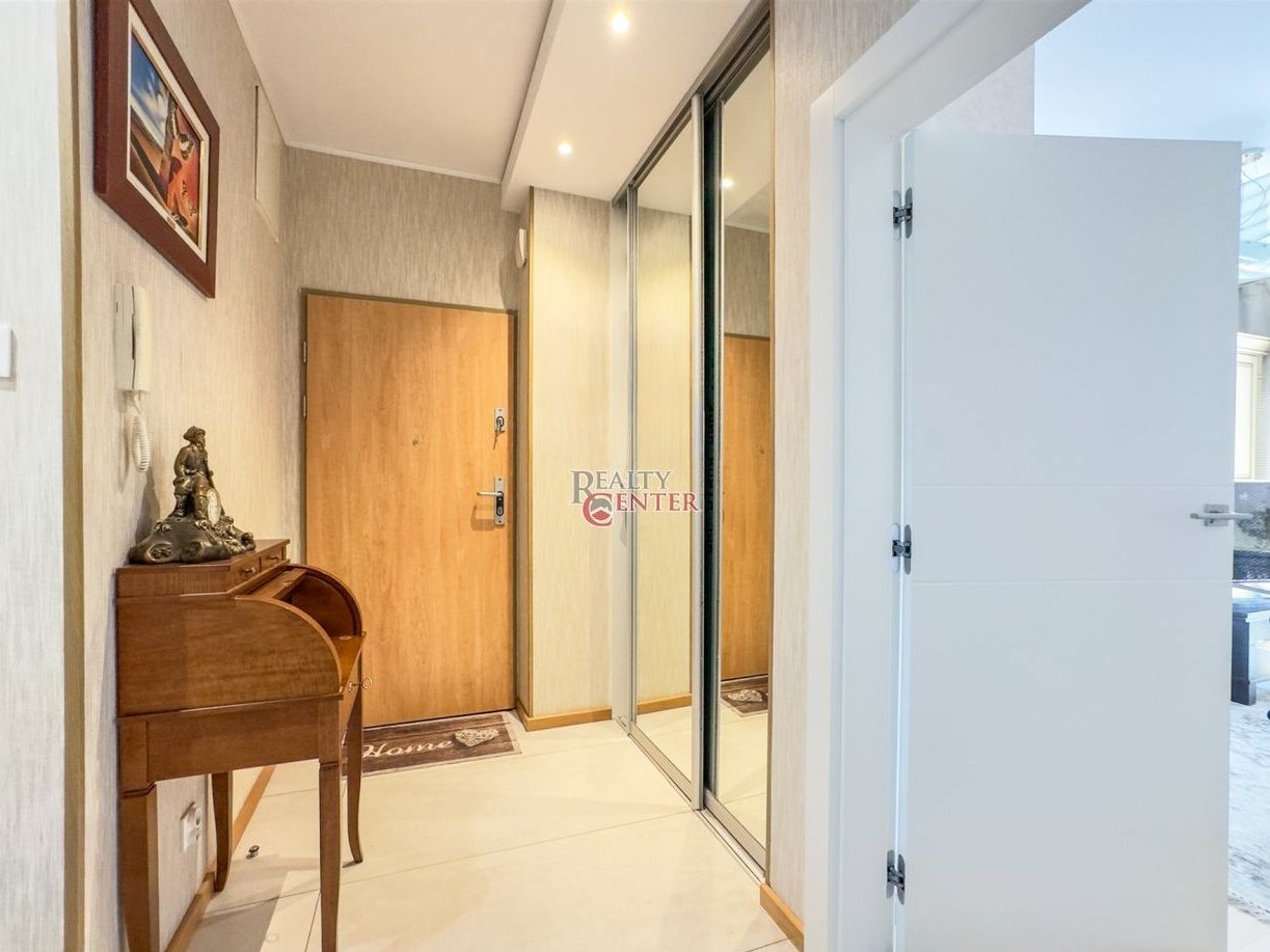 Spacious apartment on the 3rd floor, double-sided, which makes the apartment very well lit. The living room is connected to the dining area and kitchen. From the living room there is an exit to a balcony overlooking the partio and the playground. The apartment is located in a great location of the Eko Park housing estate. The immediate vicinity of green areas and a short distance to the city center and the airport are a huge advantage of this apartment.