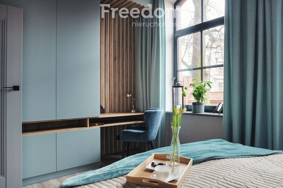 Wnętrza zostały wykończone wysokiej klasy materiałami, a zabudowa kuchenna oraz meble – wykonane na zamówienie – tworzą harmonijną i elegancką przestrzeń. To propozycja idealna zarówno jako miejsce do życia, jak i inwestycja pod wynajem premium.
