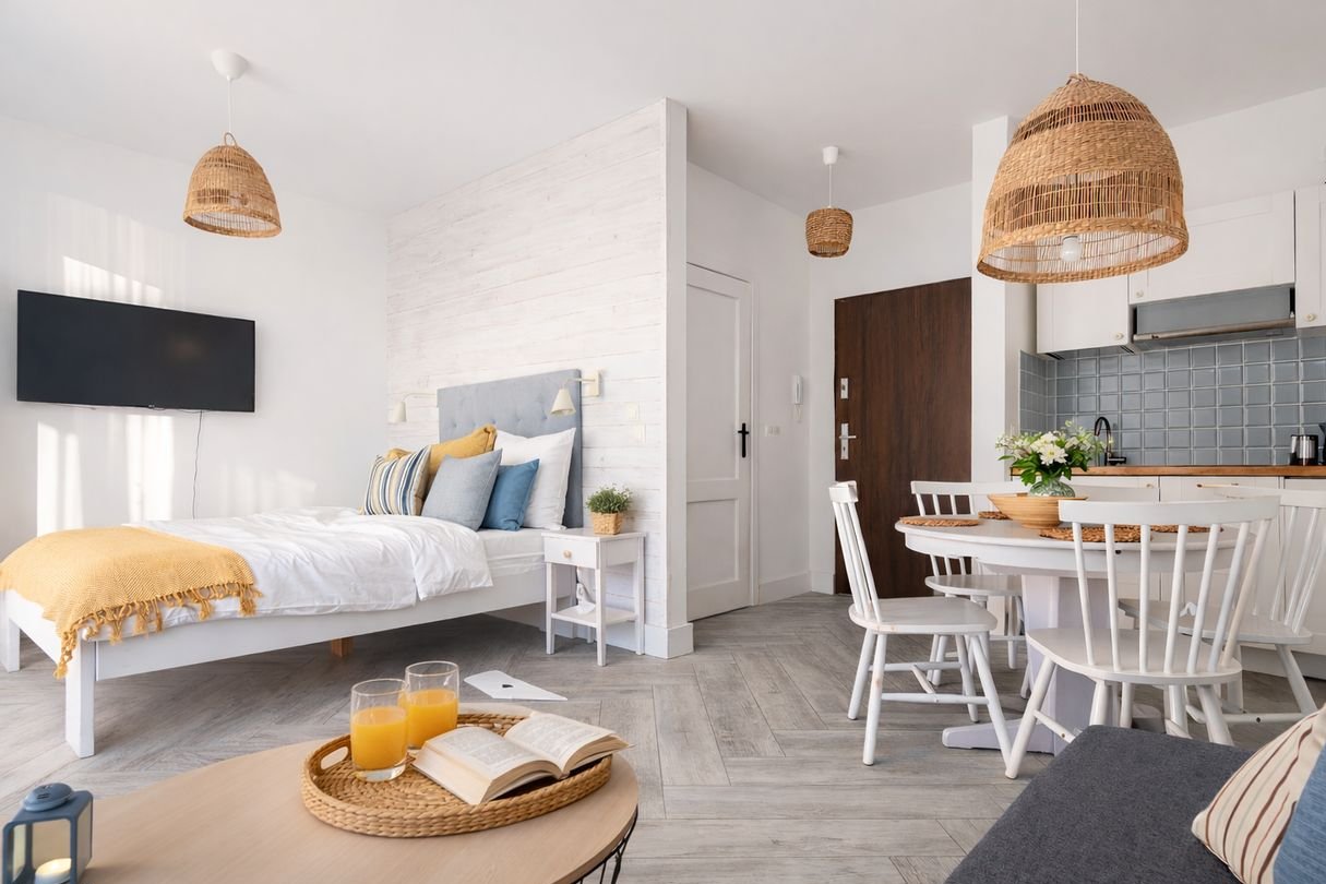 Apartament jest w pełni umeblowany i wyposażony, a całe wyposażenie pozostaje w cenie sprzedaży. Dzięki temu nowy właściciel może korzystać z nieruchomości od razu po zakupie lub kontynuować wynajem bez konieczności dodatkowych inwestycji.
