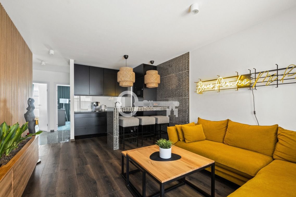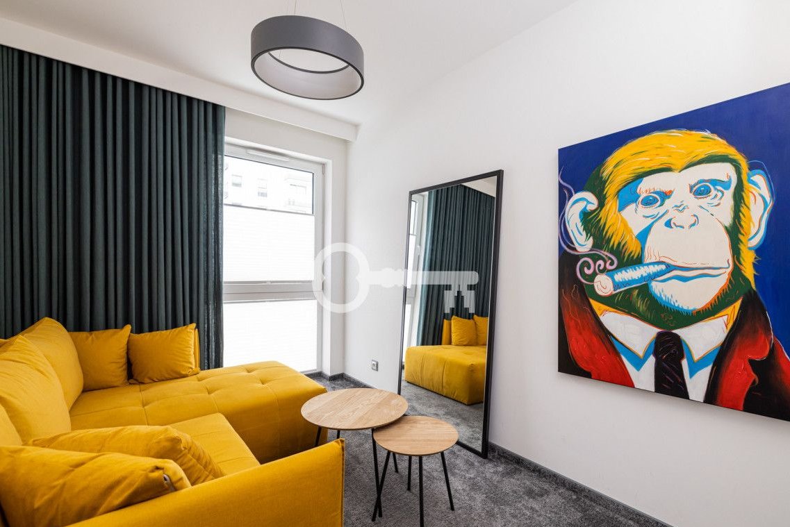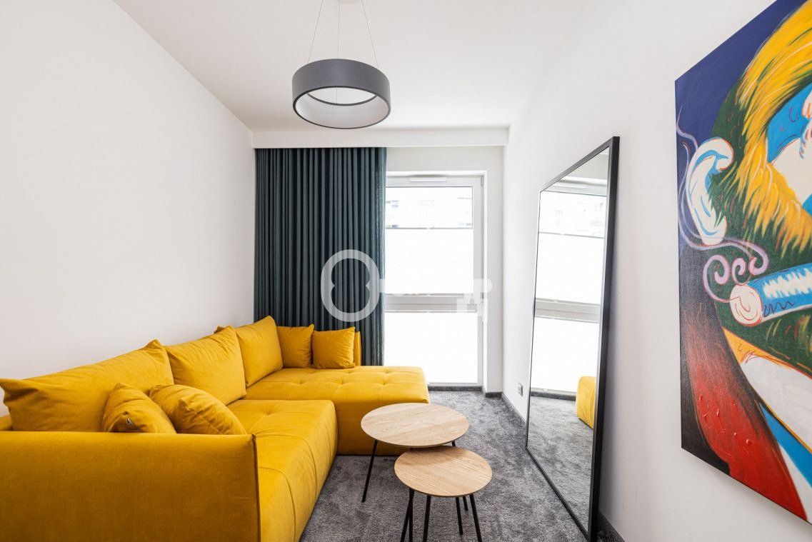 We offer for rent a three-room, fully equipped apartment (56 m2) with a small garden. The apartment is located on the first floor of a 4-story apartment building from 2018 with elevator and underground garage hall.