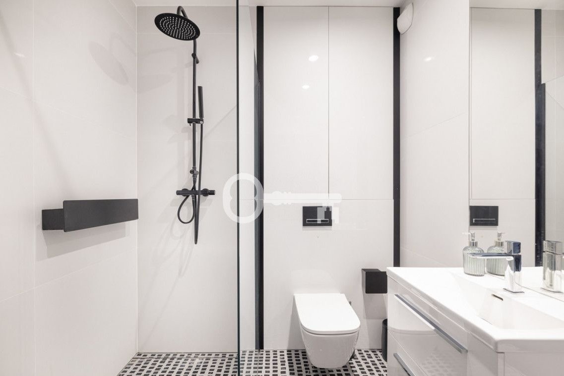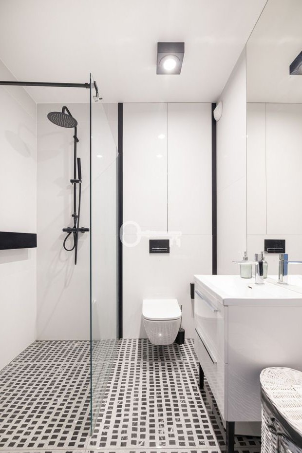 * jasnej łazienki z kabiną prysznicową,