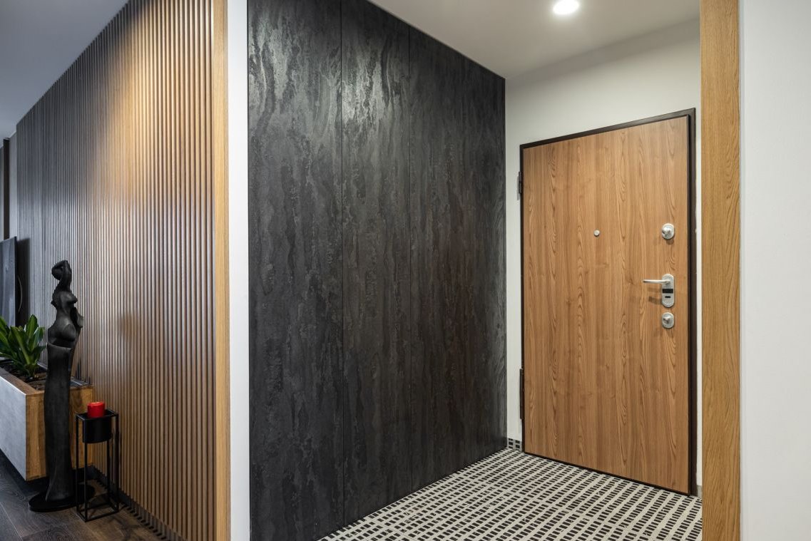 Hall z dużą i pojemną szafą w stałej zabudowie.